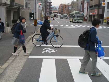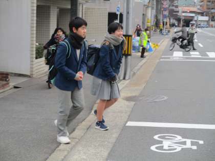 流石二条中の生徒です。交通マナーも大変よろしい。