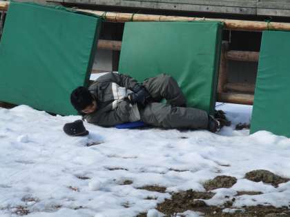 今年は雪が少なく、雪遊びやそり遊びのために職員の方が雪を集めてくださったようです。子どもたちは楽しく活動していました。