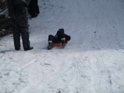 うちの生徒もそりでじょうずに滑っています。