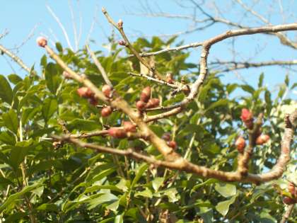 正門の「あんず」のつぼみも日増しに膨らんできました。