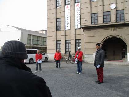 二条中学校に集合されたのち、二条公園で訓練です。