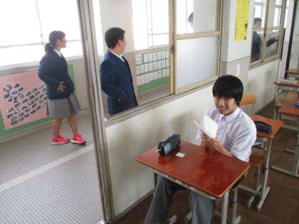 昼休みに、学習のことを先生に相談している人も居ます。
