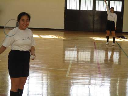 体育館ではバドミントンです。グランドの激しさに比べると、ゆるい空気が流れる中で楽しく活動していました。