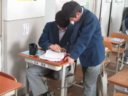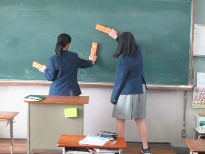 黒板をきれいにしてくれている人が居ます。前の時間の復習でしょうか、2人で一生懸命勉強していました。
