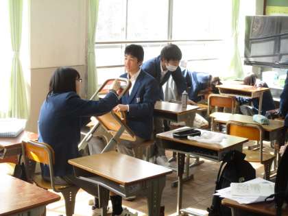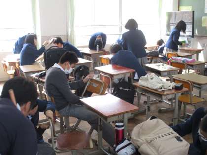 公立高校受検のない人たちは、机と椅子をきれいにする活動に力を貸してくれました。