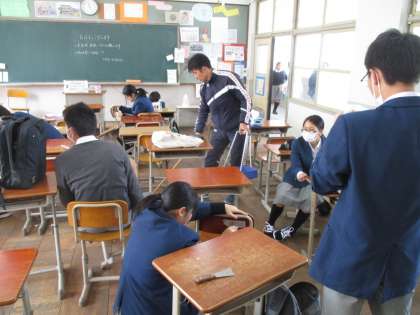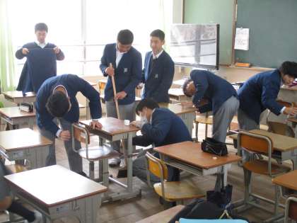 今日、テストに行っている人の分までやってくれていました。教室内外の清掃活動は別に日がとってあります。その時にはもう一度頑張ってください。