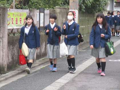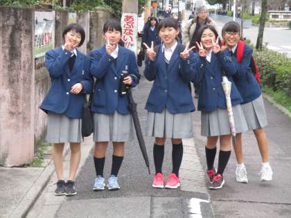 二条中学校の生徒たちのエネルギーは、天候に左右されません。今日も元気に行動開始です。