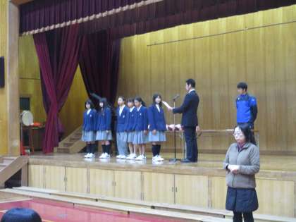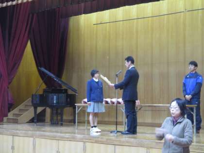 全校生徒が一堂に会するのは今日が最後なので、この機会に伝達表彰を行いました。