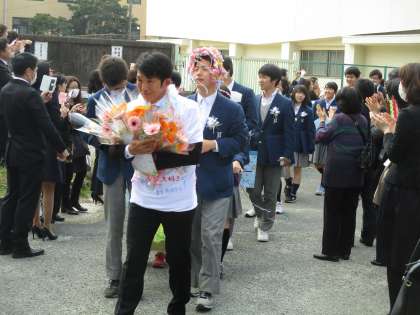 福井先生が着ているTシャツには、生徒たちのサインが入っています。彼らからのプレゼントでしょうね。