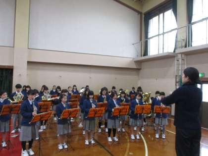 まずは、吹奏楽部の演奏に乗って校歌斉唱です。