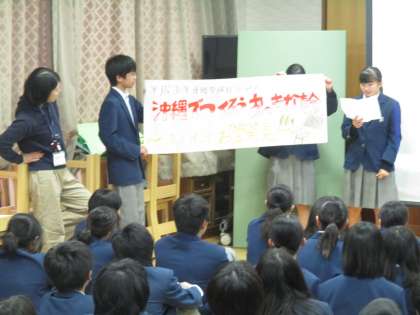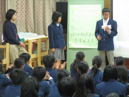 学級の反省の後、修学旅行実行委員会からスローガンの発表がありました。