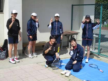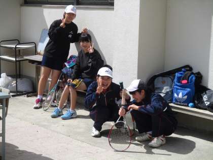 テニスコートでは、休憩中の皆さんを撮影しました。