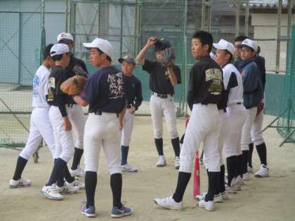 今、グランドでは野球部が活動しています。