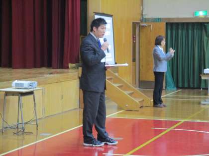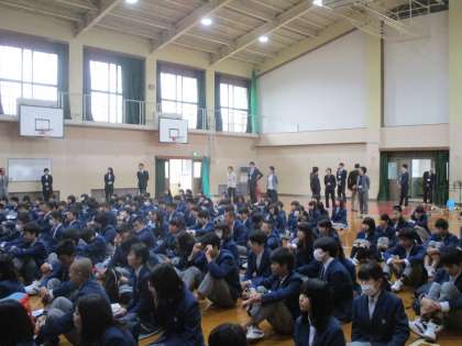 部活動顧問の発表のあと、生徒指導部長の上村先生からお話がありました。