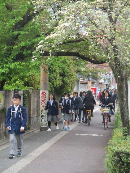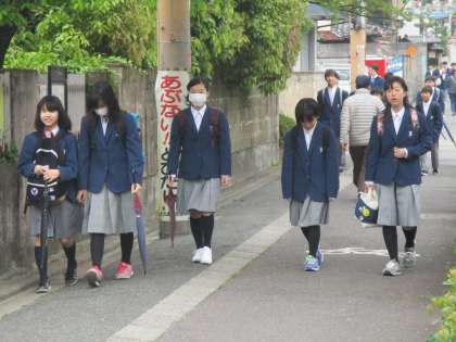 しかし、今日も3学年が揃って登校してきました。1年生を中心に登校のお湯素を紹介しましょう。