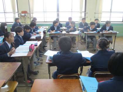 校歌の楽譜を写すという学習です。歌えるようになった校歌。これを音符で表現するとこうなるという事を知ってもらうための学習です。