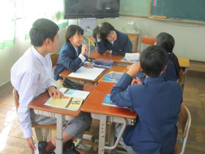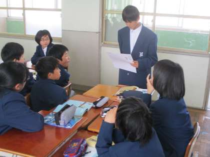 グループ学習の後は、で話し合った内容を全体に発表します。