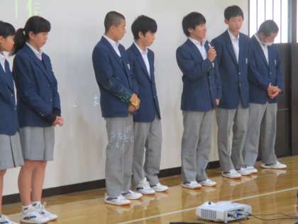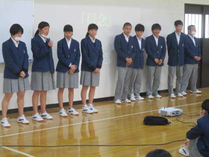 体育系部活動のキャプテンが前に出て決意を述べ合いました。
