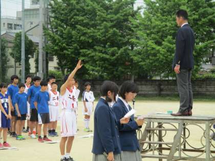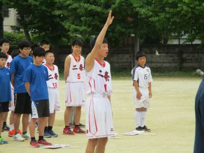 宣誓者は、男子バスケットボール部のキャプテンです。