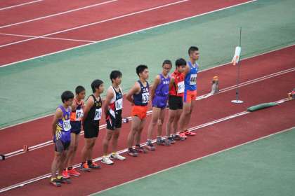 午後から西京極陸上競技場へ行きました。陸上競技が行われています。