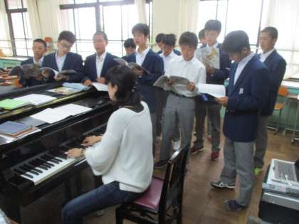 このクラスは音楽です。リコーダの練習の後、合唱をしていました。
