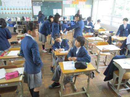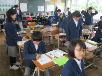 1組の教室へ行ったとき、ちょうどチャイムが鳴って理科の時間が終了しました。