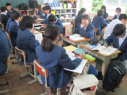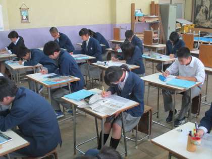 2組は美術です。「鳥獣戯画」を鑑賞しながら何やら作業をしていました。