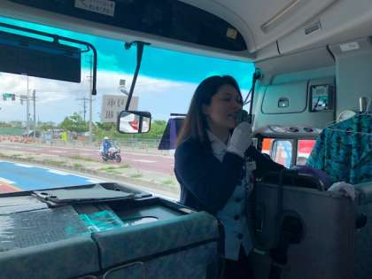 バスに乗って移動です。よろしくお願いします。!