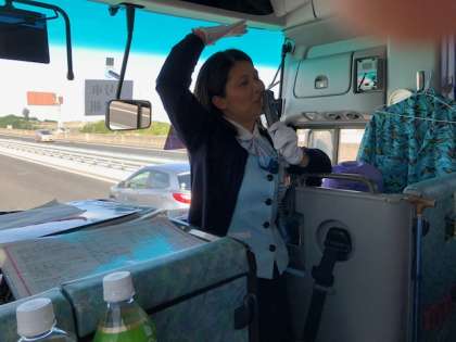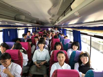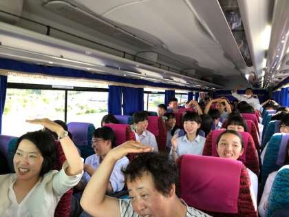 バス移動の時間も楽しいひとときです。盛り上がっています。