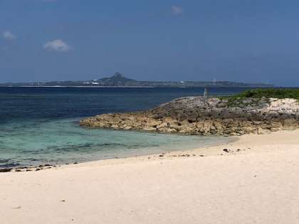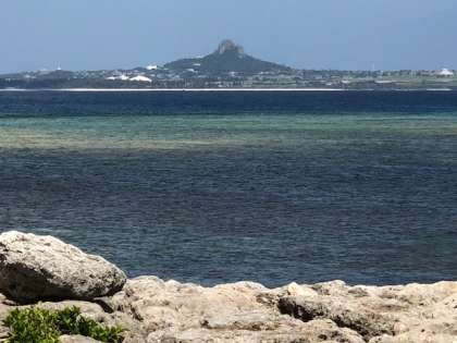 海の向こうには伊江島が見えます。