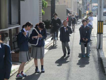ここに立っていると、校門では出会えない卒業生にも会うことが出来ます。