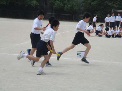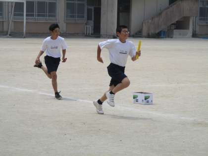 体育大会を目指して、リレーの練習です。リレーは、やはり見ていても面白いです。
