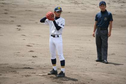 この試合のバッテリーは、ピッチャー上田くん、キャッチャー天野君です。