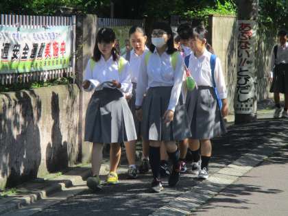 上級生の中にはノートを手に登校する生徒もいます。