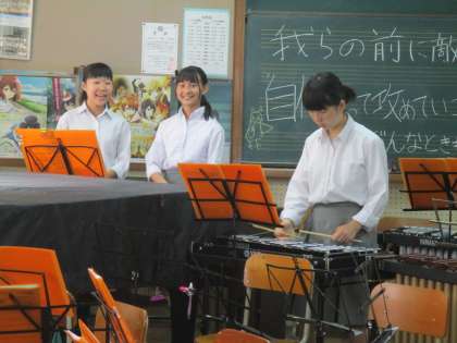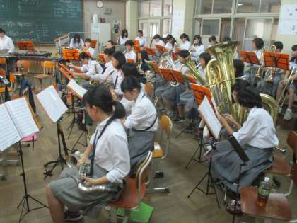 1年生もしっかりと全体練習に入っています。第一音楽室がいっぱいです。