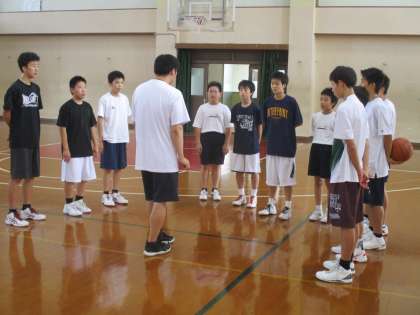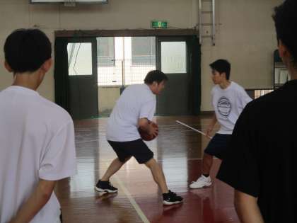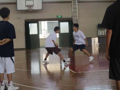 午後の体育館では男子バスケットボール部が活動を始めました。