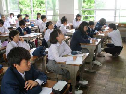 2組の教室へ行ったとき、ちょうど授業の終わりを告げるチャイムが鳴りました。