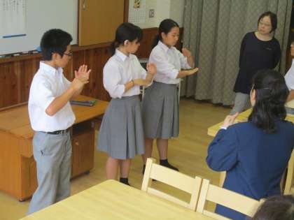 文化委員会では、今日も全校手話コーラスに向けて手話の練習です。