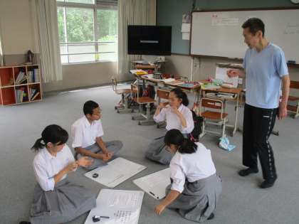 5組は英語。文章を連ねて物語をつくるあのワークです。