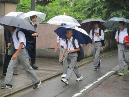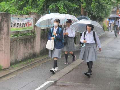 本格的な雨です。生徒の登校時間帯には、結構激しい雨になり子どもたちには気の毒なことをしました。