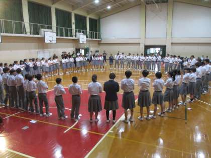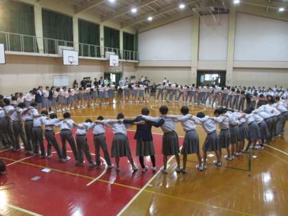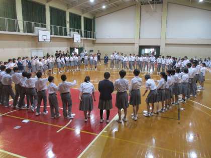 10分間の話合いを経て出来上がった青組の円陣が披露されました。