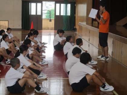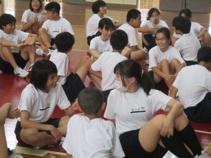 2年が学年体育の時には結構激しく雨が降っていましたので、体育館で行うことになりました。
