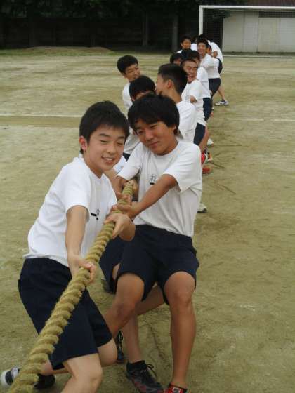男子対女子で綱引きの勝負です。