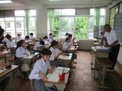 各クラスにそれぞれ5組の生徒が交流で入っているので、○組という言い方は避けますね。