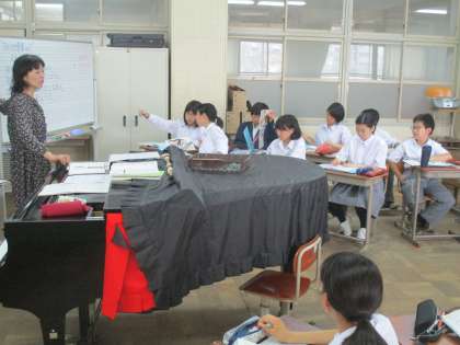 アメリカの作曲家フォスターについての学習です。数々の名曲を残している有名な作曲家です。私も話に聞き入ってしましました。