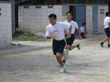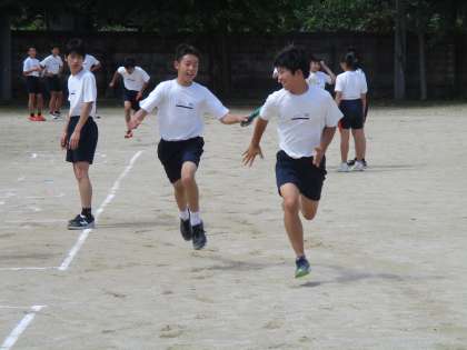 リレーの練習が熱い。本番目指して頑張りや—。