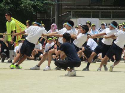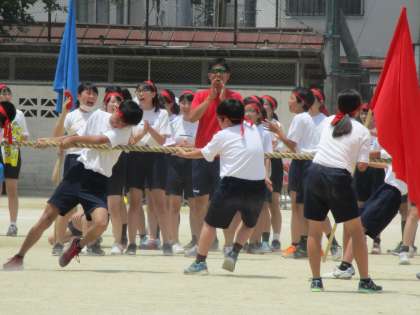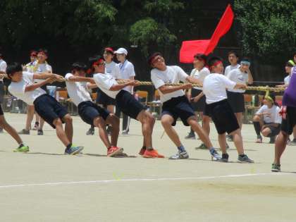 綱引きは疲れるんですよね。頑張っている様子がよく分かります。