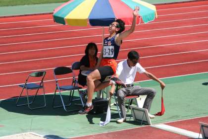 写真は、男子走り幅跳びの決勝、男子200メートルの決勝、女子円盤投げの決勝に残って闘った3人です。