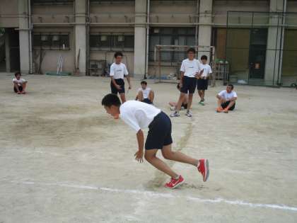 3時間目、1・2組が体育です。陸上競技に挑戦しています。