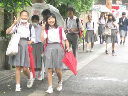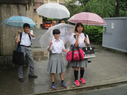 8時10分を過ぎたころから、生徒は傘を差さずに登校するようになりました。